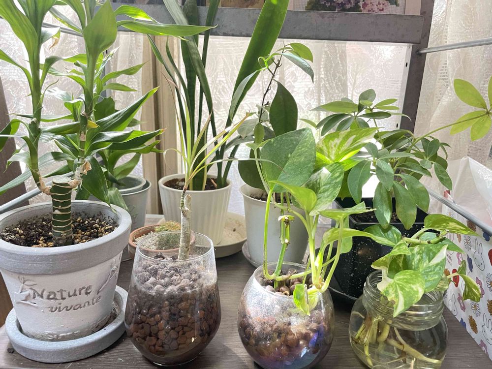 9月中旬に強風で棚が倒れてしまいました😭 折れたり葉が取れたりスカスカになった子達を カットしてまとめました 元気に成長しているので経過を記録したいと思います❗️