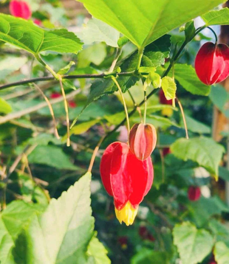 真っ赤な「アブチロン」の花で、おはようございます☀️