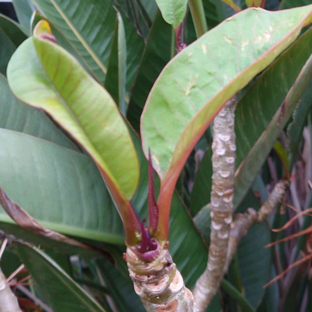 ウチも昨年初めて買ったプルメリア新芽が出てきてるけど花芽らしきものは見当たらないので心配💦で毎日覗き込んでます😅