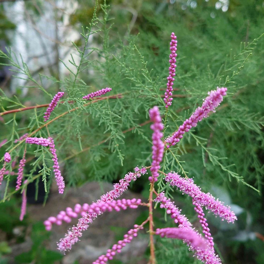 細かい灰緑色の葉にピンクの穂状花が美しい