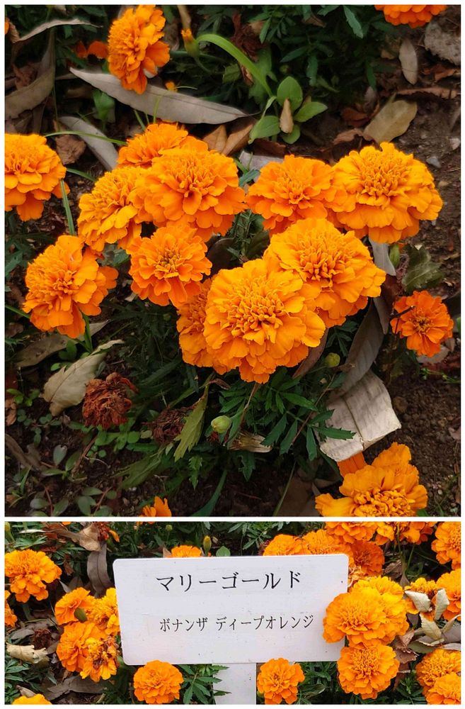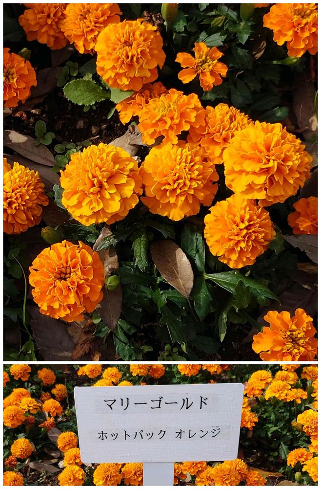 マリーゴールド最終回は、オレンジ系でまとめてみました😀 昨日のイエロー系と同様、見分けがむずかしいです☹️ でも、みんないい色です🙌(農業試験場内にて)