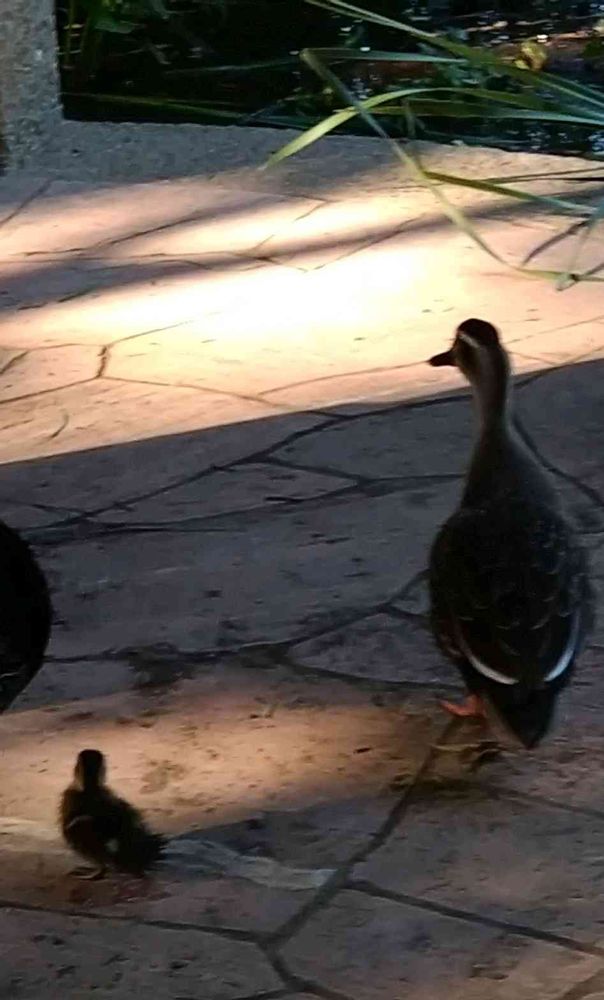 離れた池には夕ご飯に夢中な11羽の🐥と🦆が賑やかに🎶