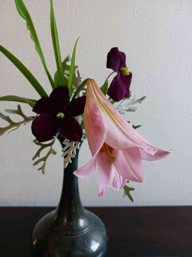 バリエーションの少ない庭の花と少ない花器からベストな組み合わせを見つけ出すのに苦労しますが、、、そんなの言い訳ですね😅