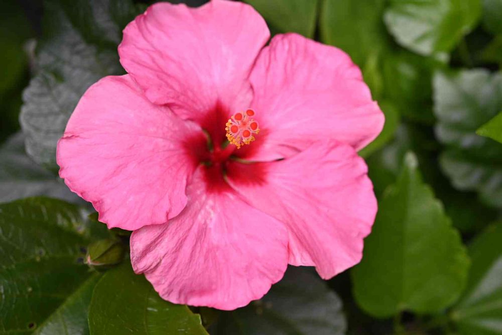 赤と黄色のハイビスカスの開花はしばらくお休みしていますが、このピンクのハイビスカスは蕾をいくつかつけています。