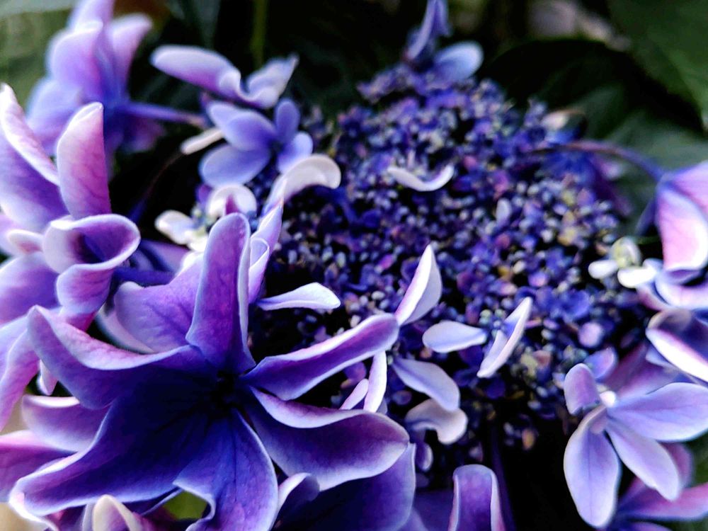 昔、子どもの頃お庭にあった山紫陽花の令和版って感じかも。星形っぽいガクの型もいい。そしてこのアメージングなカラーが素敵💟✨