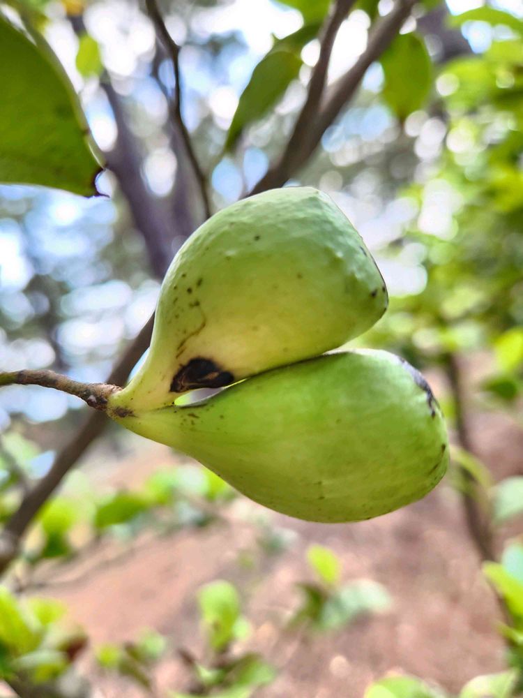2️⃣大・中・小と三個並んで膨らんだイスノキの果実、あるいは葉の虫こぶ。