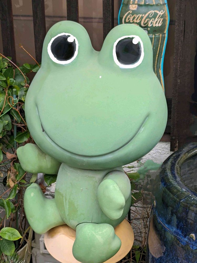 5️⃣居酒屋さんの店頭に置かれたケロちゃん