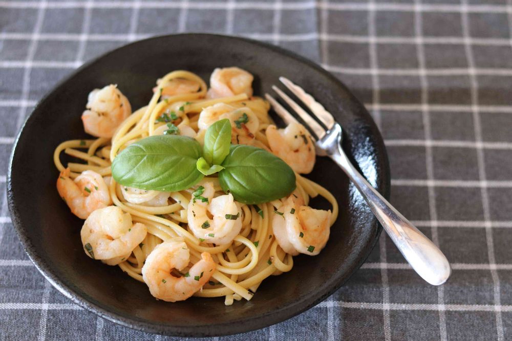 本日のメニューはエビとバジルのペペロンチーノ🍝🌿