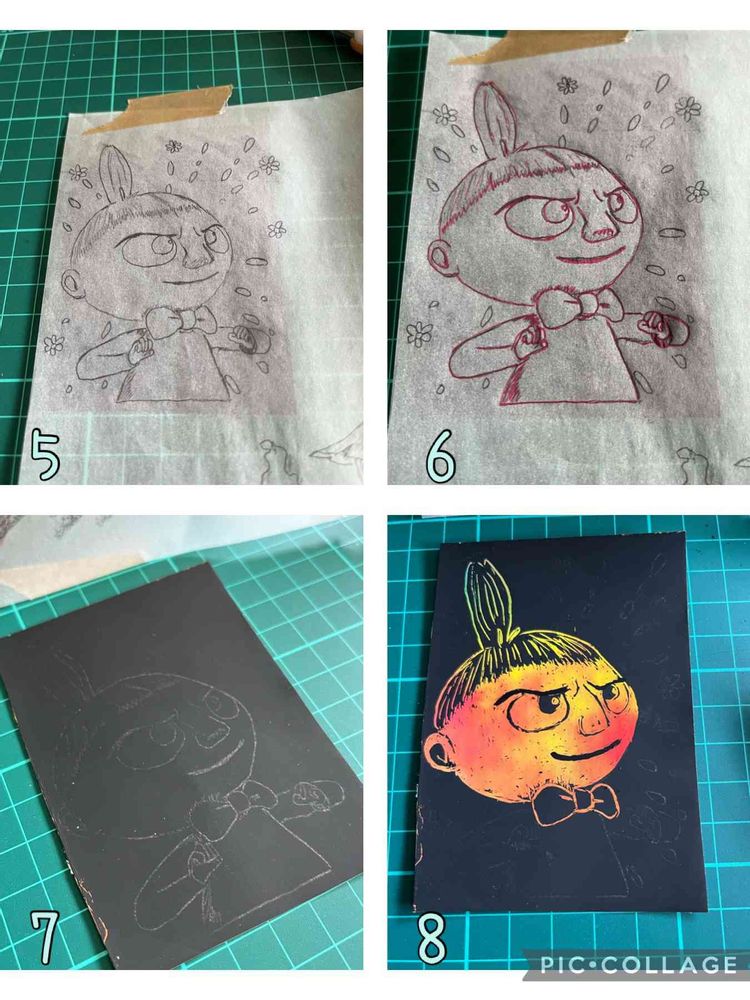 に被せて、再度色付きボールペントレースすると型がつくので、削っていくと言うやりかた✌️