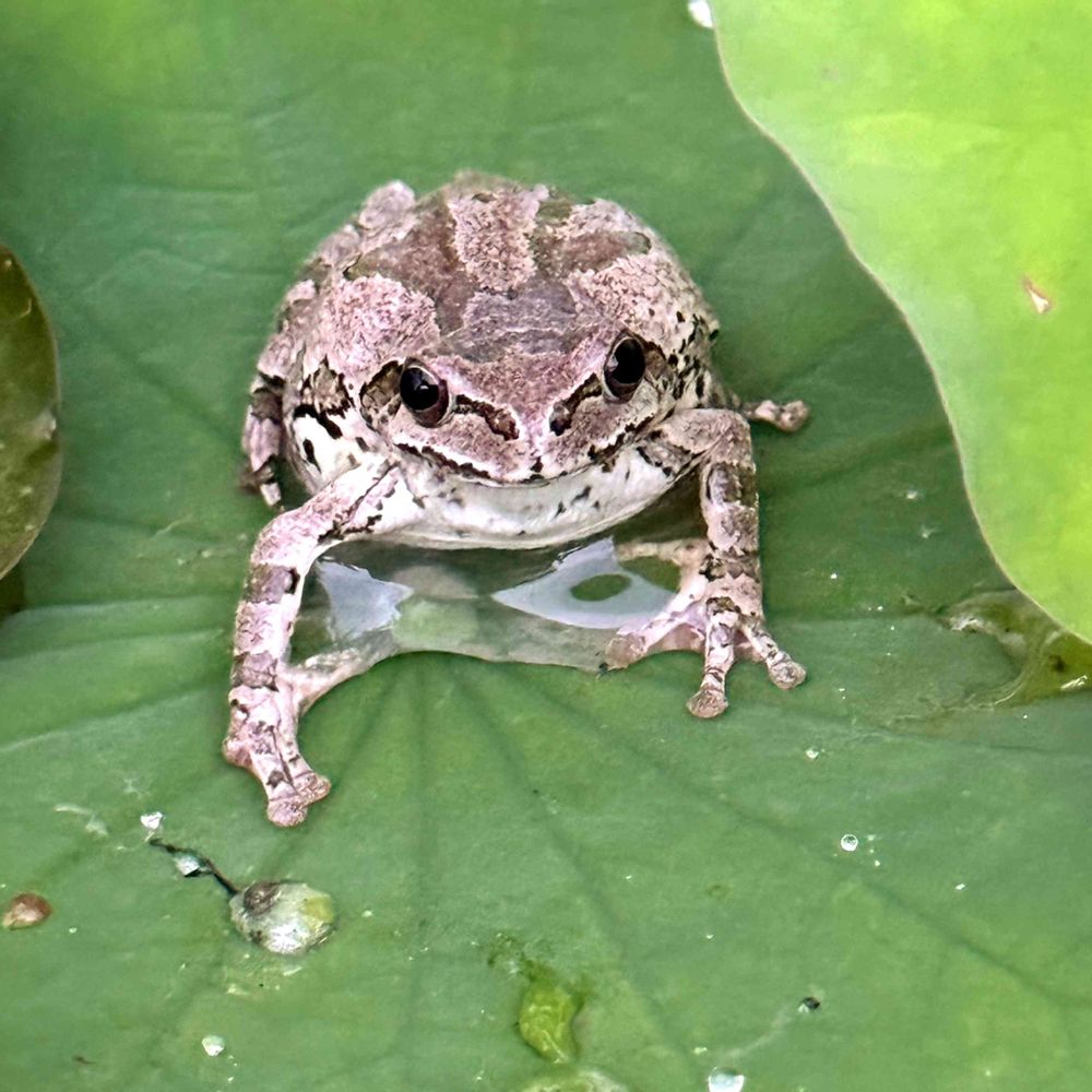 かえるさん、ずいぶん愛愛嬌のあるポーズですね😜今日もああつかったですね😣