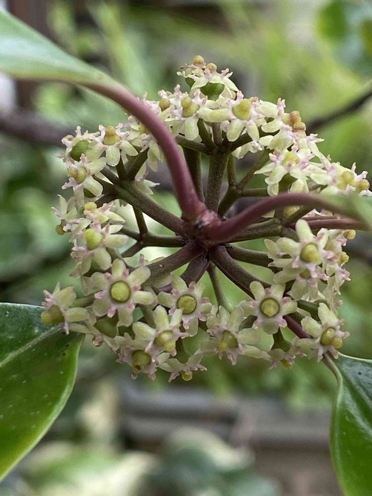 我が家にもあるクロガネモチですが、これはご近所の空き家のクロガネモチ。今花盛りです。