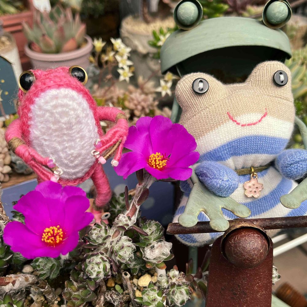 ピンクの編み編み🐸さん、うちにもいたんだ😱