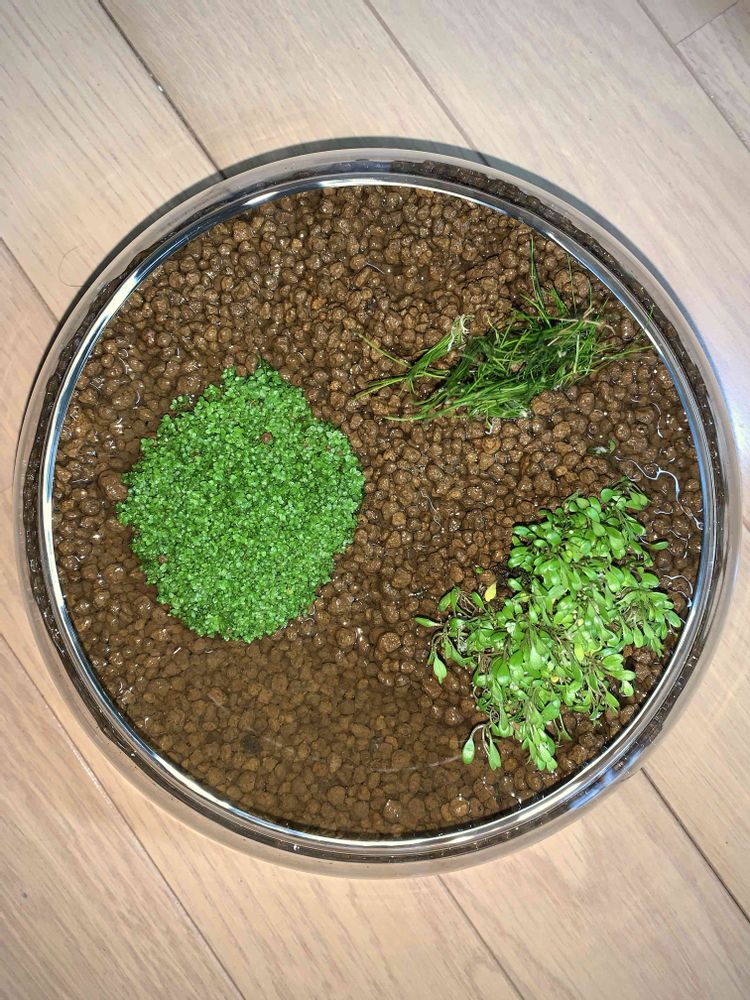 6月5日(水) 水草3種をガラスボウルに硬質赤玉土で植えました。