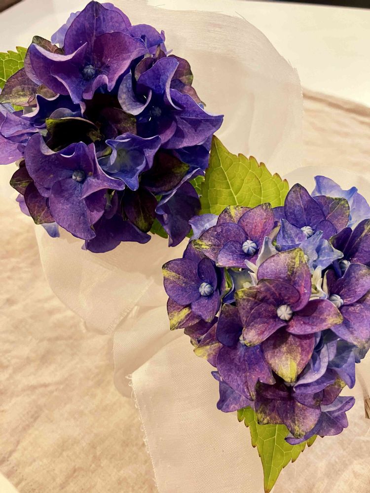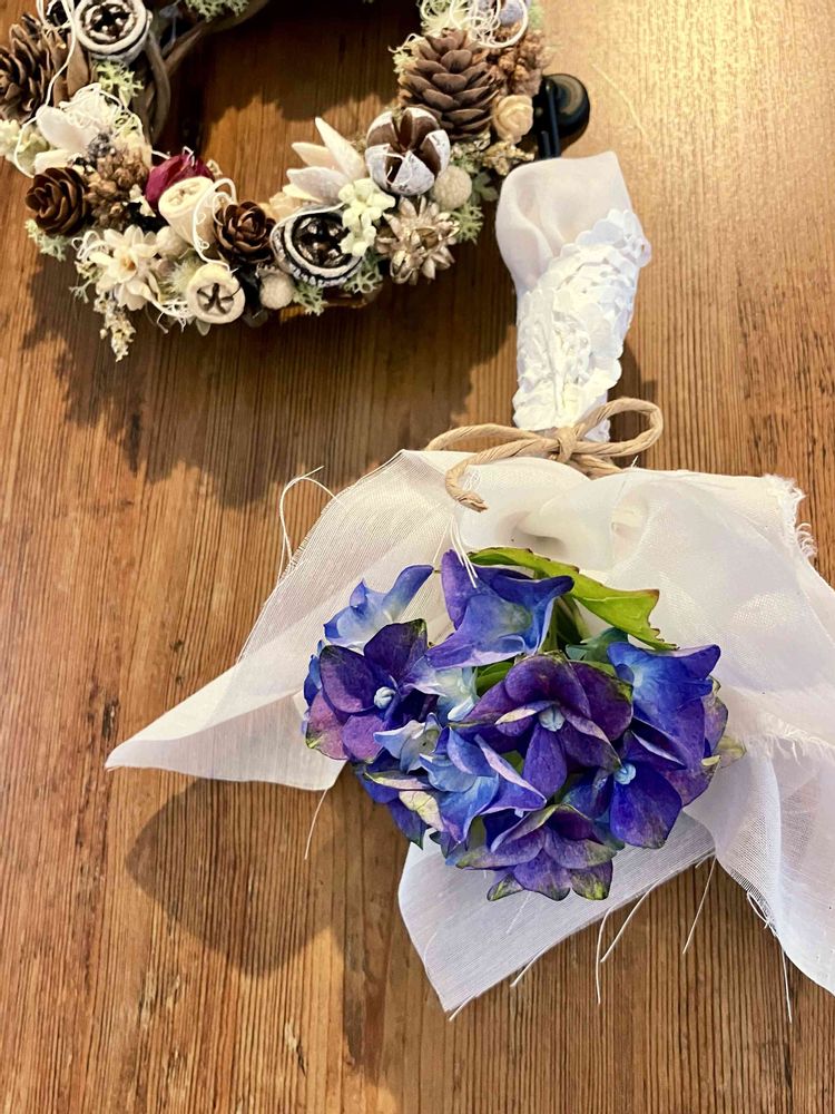 紫陽花だけでなく、お好きな花材と一緒に包んでも良いです。