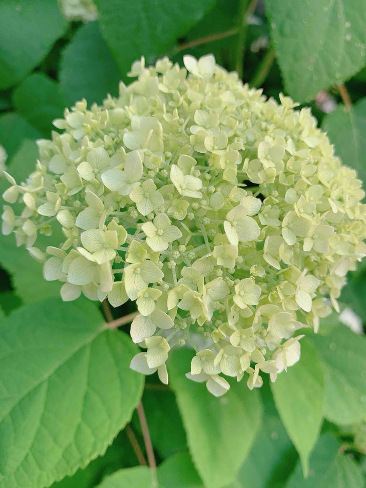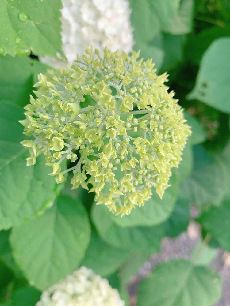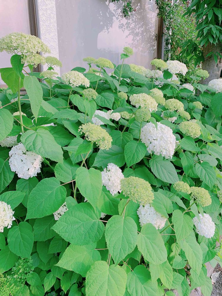 いつもアナベルの開花とほぼ同時に梅雨が来て、バタバタ倒れたのを泣きながら切る…のがお約束でしたが、今年は梅雨が遅いからもりもりを長めに楽しめそうです😊