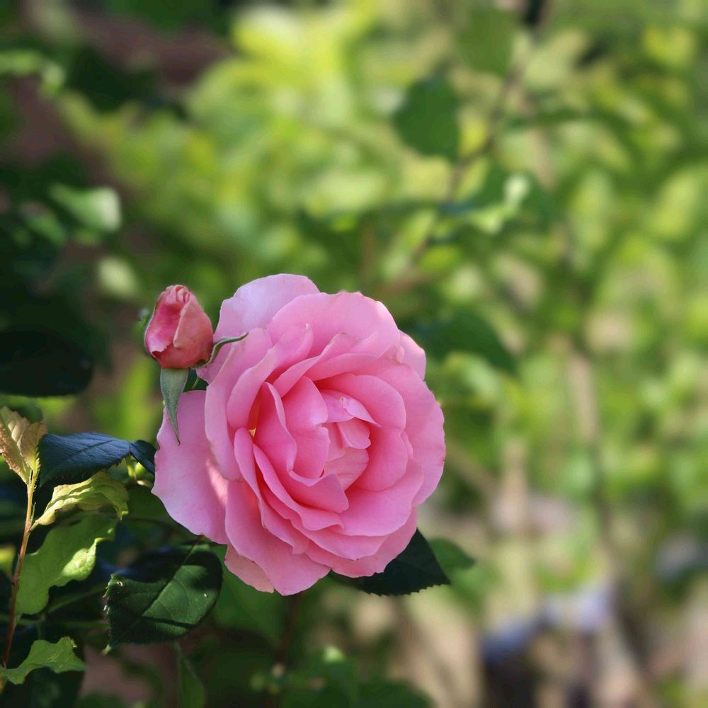 朝の光を纏った薔薇がとても美しくてカメラ持ち出しパシャリ📷