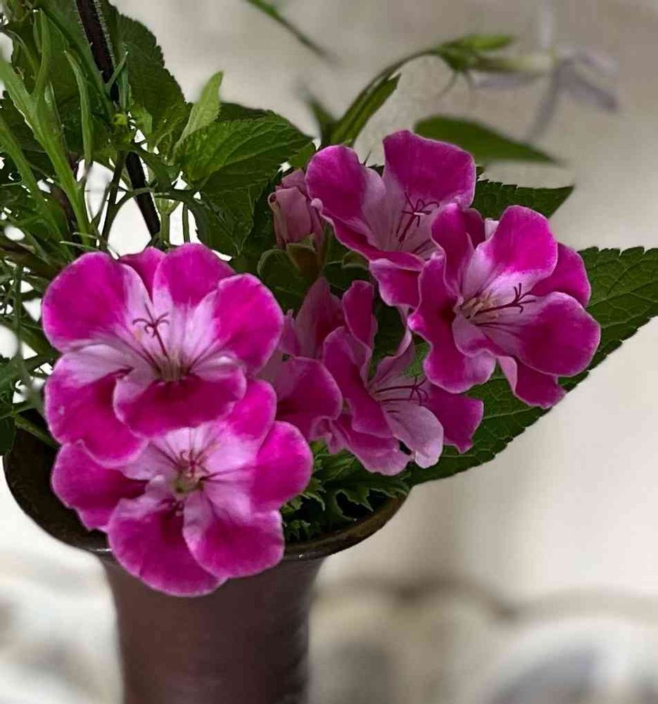 実家で咲いているペラルゴニウム(ゼラニウム)をカットして花瓶に入れてみました💕