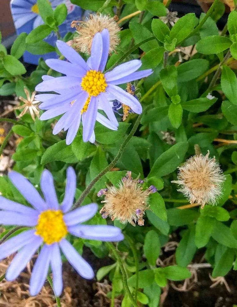 ③寄せ植えのブルーデージーもそろそろ種が