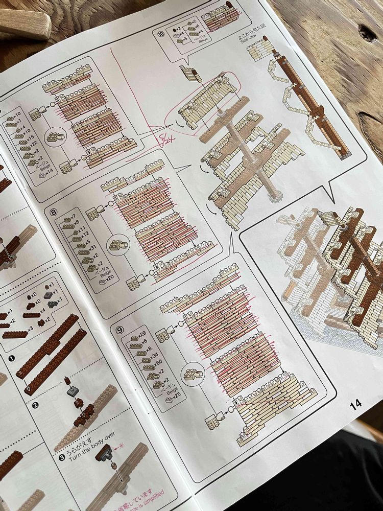 帆の部分大変そうです✨組み間違えてせっかく組んだのを外してやり直し↷私も巨大犬を作った時によくやり直したので気持ち分かります😅図面も小さくて👀も怪しい🔍日付をチェックしたりして…同じ同じ😅
