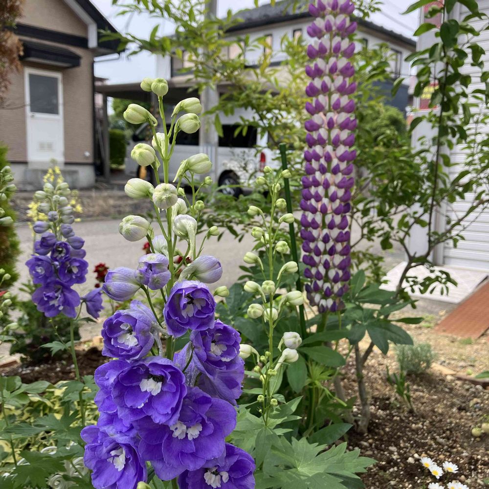 デルフィニウムやルピナス 来年はもっと増やしてこの場所を背の高いお花さん達で埋め尽くしたいです〜 そんな上手くいかないかっ🤭