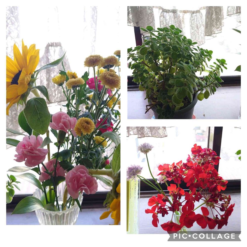 アロマティカスとベランダに沢山咲いているゼラニウムᡣ𐭩チャイブです❤︎