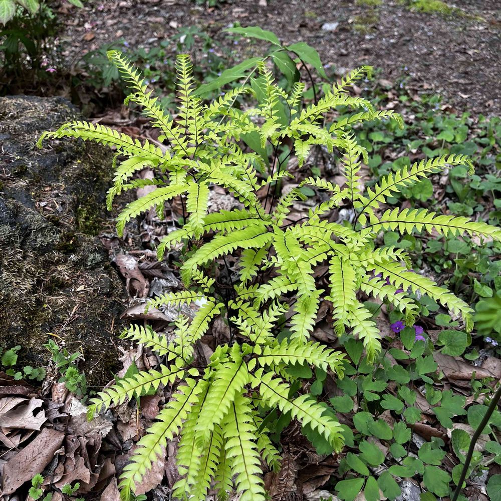昨年、たまたま売ってるのを見つけて実家に植えたクジャクシダがちゃんと新芽を展開していてもう満足😍なんて美しいんだろう