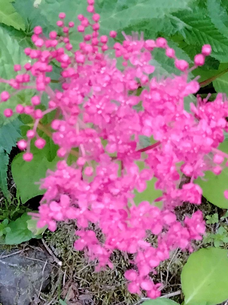 これも山梨県の自宅の庭に自生している植物です。小さい球体の蕾がたくさん付き開くと同色の4枚花びらの直径1センチ程の花になります。教えてください。よろしくお願いいたします。→のちにGS先輩会員さんに教えていただき「キョウガノコ」と判明致しました。