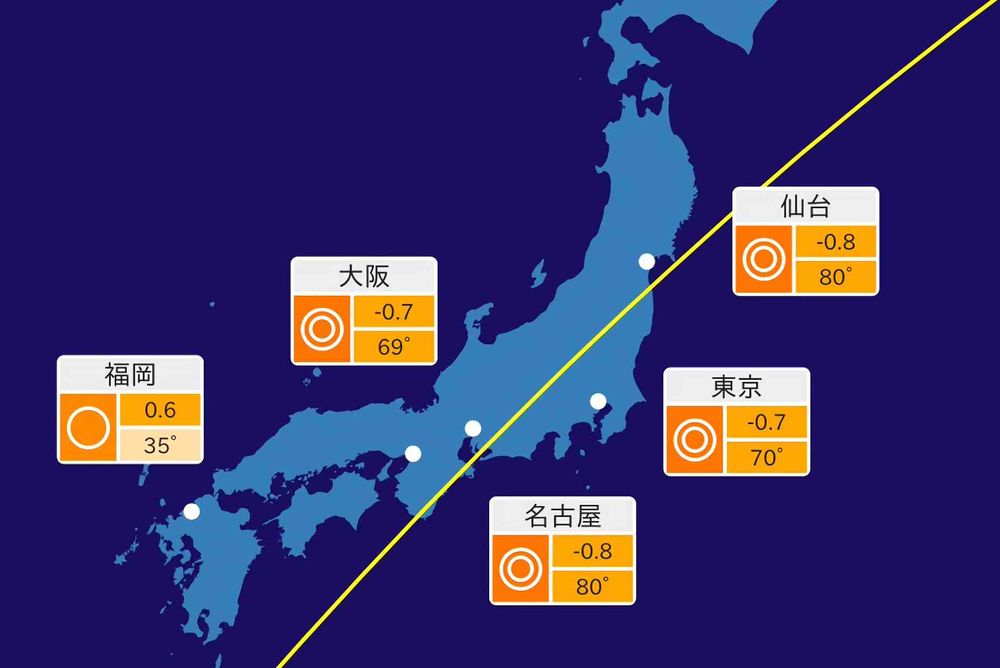 線よりも日本海側にお住まいの場合は北西ではなく南東の空を通過します