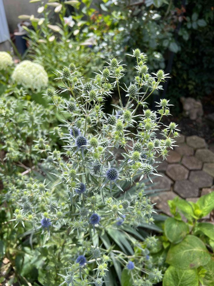 お隣のバラの肥料をたっぷり吸収して 頭が重くて倒れたりするのよ。宿根草なので暑い夏乗り切って欲しいです。