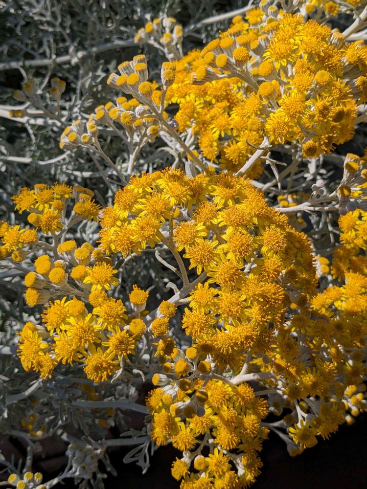 シロタエ菊は、なかなかお花咲かないのに、群生してるね。