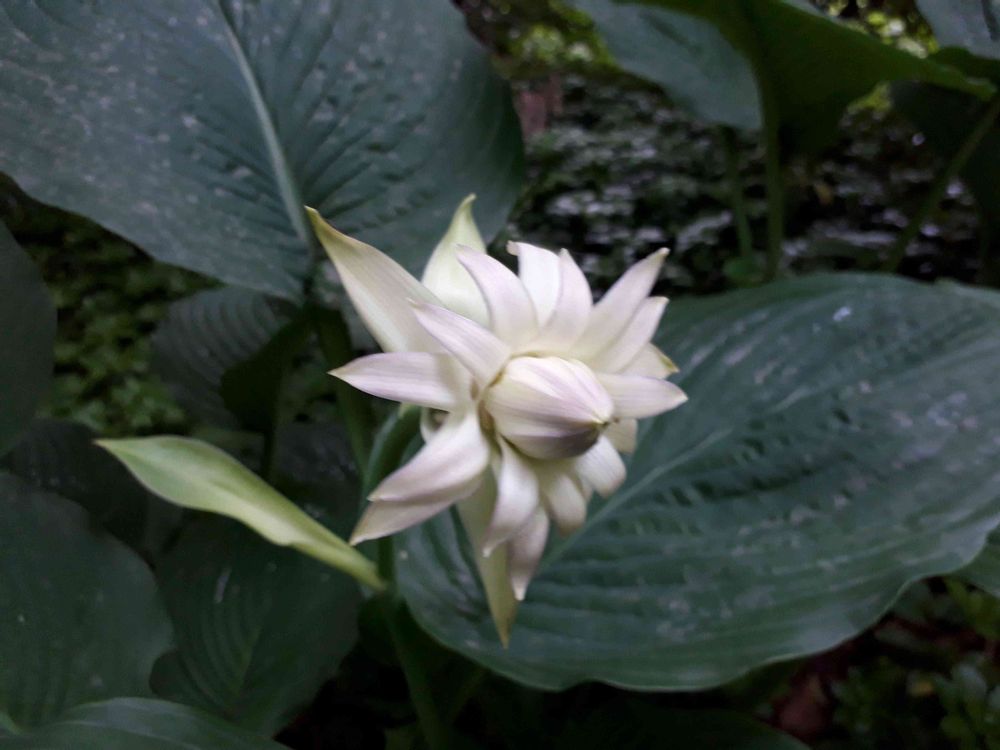 …ん〜ん??? でも気になって色々サイト廻って見たら この白い姿は蕾なんですね。お花が咲くとギボウシとよく似てました。
