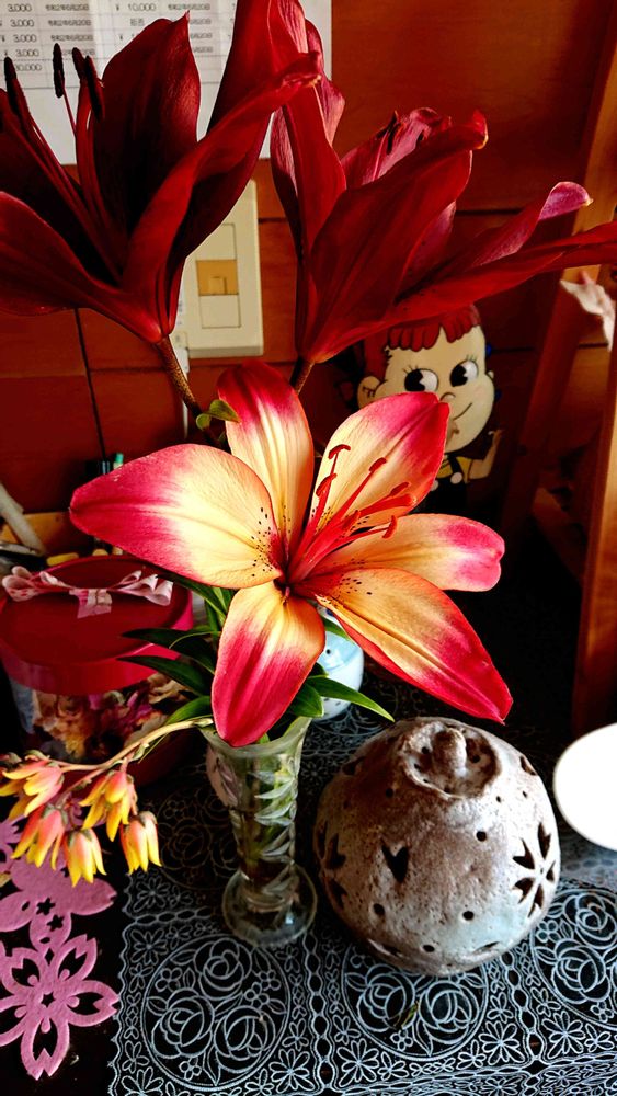 今日は寝坊😆朝イチの鮮やかな百合の花たちに目が👀釘付け‥❗️