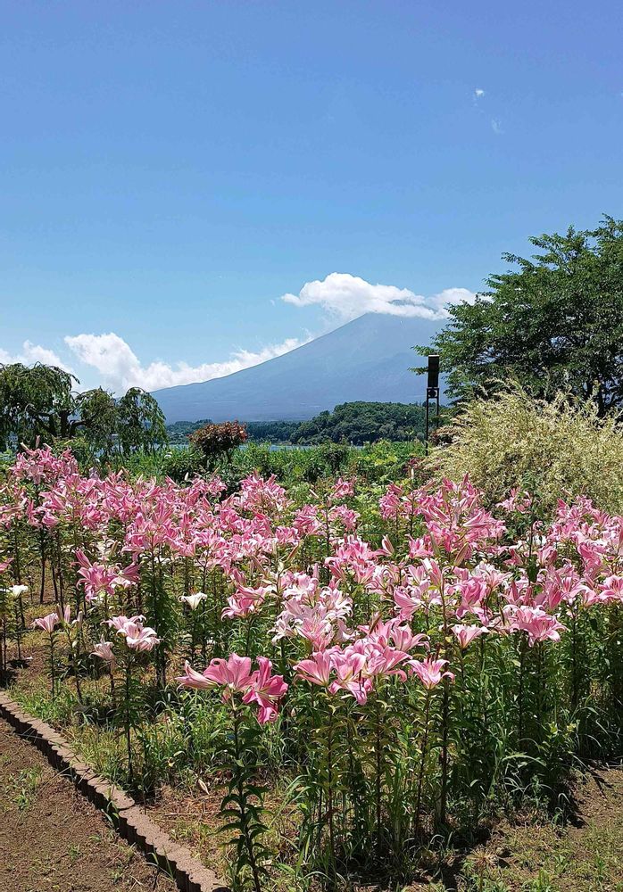5⃣ ピンクのユリと富士山 河口湖大石公園 昨年7月10日