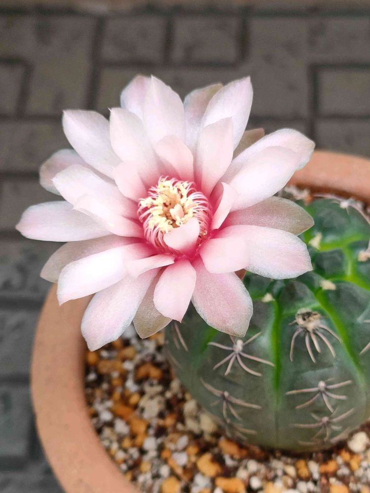 サボテン🌵💕山野草🌿宿根草💕陽当たりの悪い狭い裏庭で鉢を並べて育てています。お花が咲いたら玄関前で御披露目です😆🎵