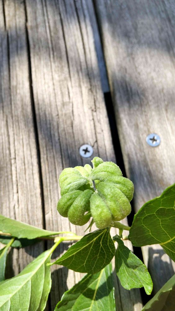 エゴノキの場合は、アブラムシが注入した物質が植物の成長を狂わせて奇形になってしまうようです。ネコ🐱🐾は好きだけど、これは、ちょっと気持ち悪い···毎年、3~4個見かけます。中身は、白いワタのようになっていてアブラムシ?みたいな小さい虫がいました。虫は、柔らかい実の中身を食べながら安全に暮らしている家だそうです。ごめんね~撤去させていただきます🙏💦🏠