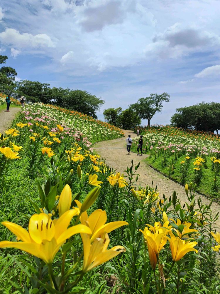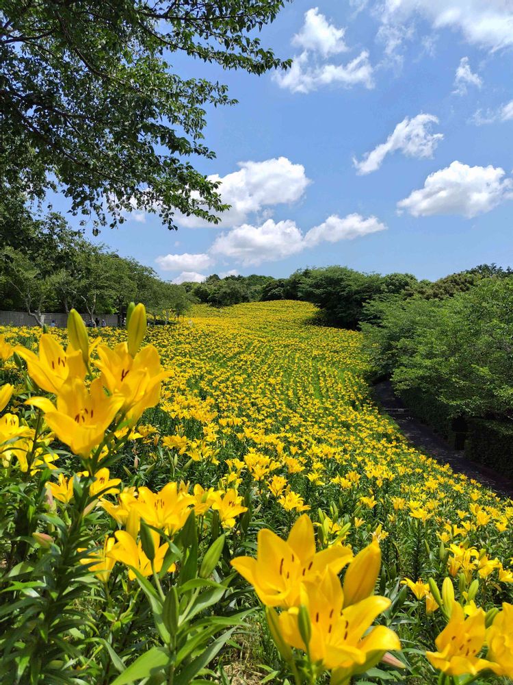 黄色い百合がどこまでも続いていて、圧巻です👍
