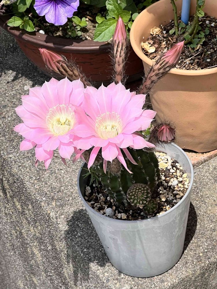 サボテンの花が咲き始めました。大きな花で驚きです❣️
