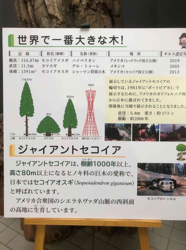 六甲山森林植物園にて、直径5.4m、樹齢約2,000年の「セコイアオスギ(ジャイアントセコイア)」の切り口をパチリ!📸🌲😄🌞✌️
