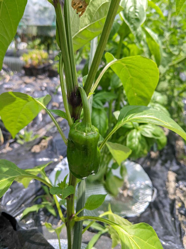第一果がなりましたが、株を大きくするため摘果します。