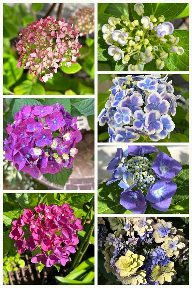 ↗️おたふくアジサイは昨年挿し木した物…一足遅れですが花がつきました♪