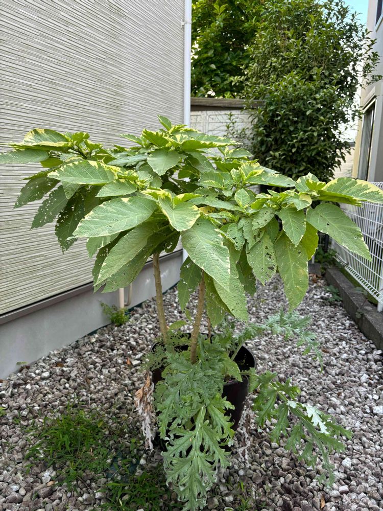 もうエンジェルトランペットお花ほぼ終わったけど、葉っぱがとても大きくなってて、斑入りはっきりしてくれて嬉しい✨