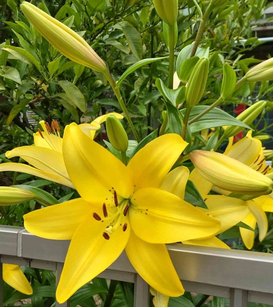 黄色いスカシユリがフェンスの上から顔を出して愛嬌を振りまいていました❣️