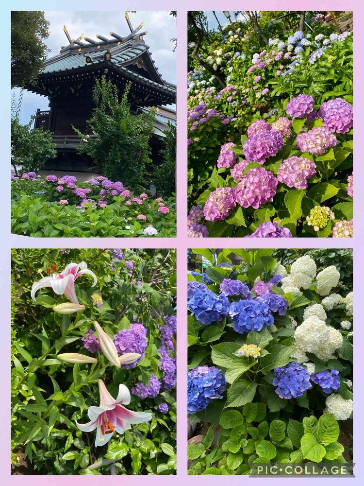 まあ〜沢山の紫陽花が綺麗な色で咲いていますね💗神社の道の両脇に素晴らしいですね✨✨
