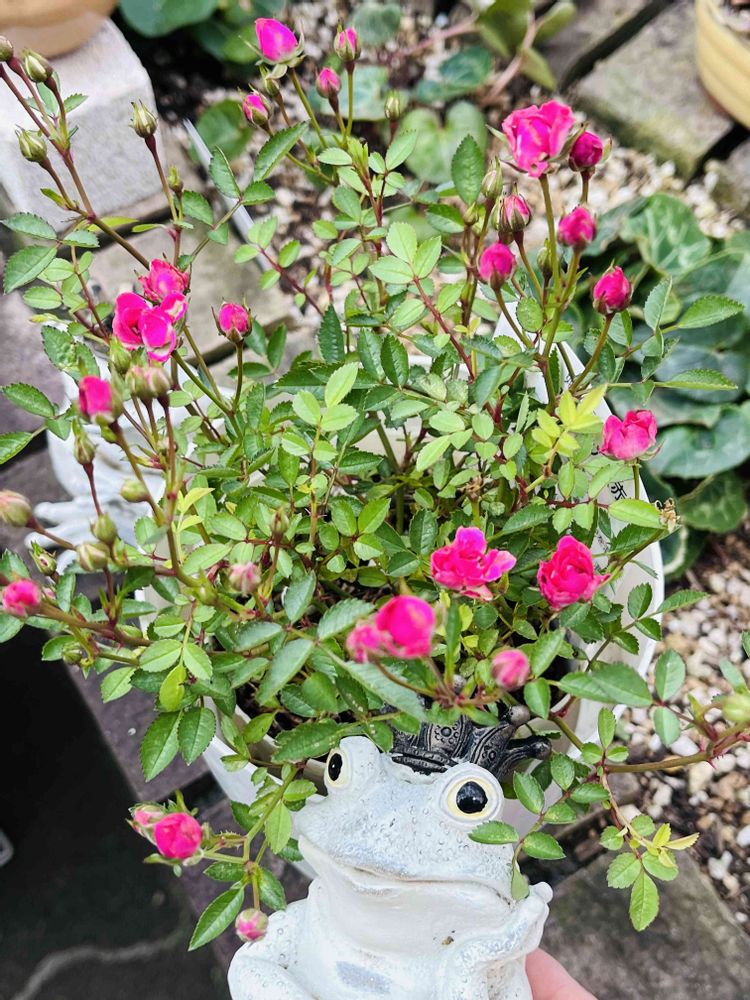 私も今日、🟡のミニバラを買ってきました🤭その後ガチャしたら持ってた同じ色のホワっと光る🐸でした🤣