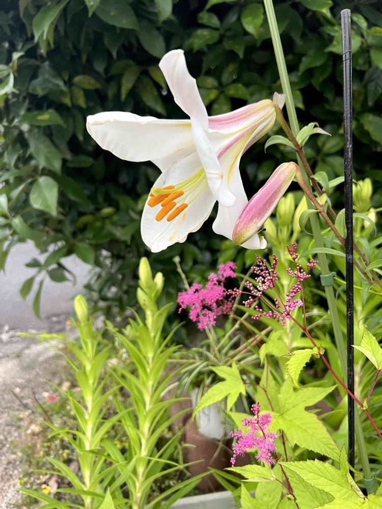 昨年のユリ花後の抜き取り球根からで、名前も色も忘れたのです😅