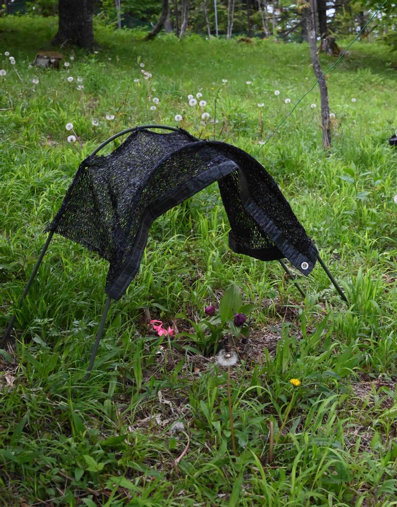 「入笠すずらん山野草公園」内のネットで囲まれた一角が、釜無ホテイアツモリソウ実験園となっていました。