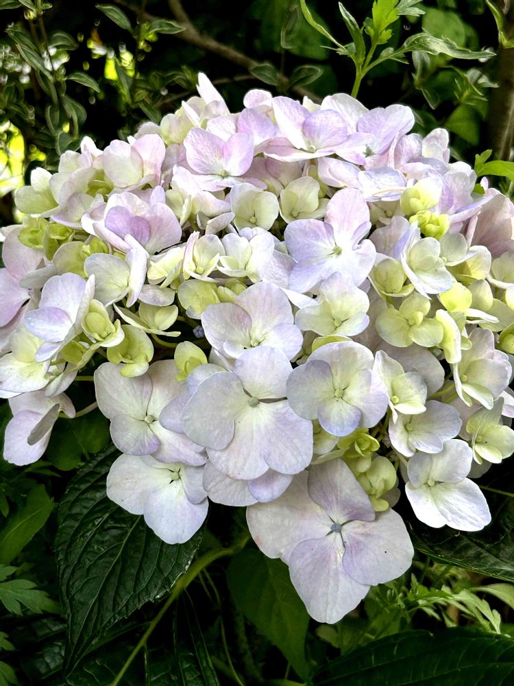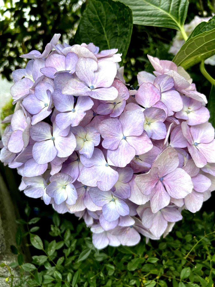 私の顔と同じ位の大きさになる地味ないろのアジサイなんです😅