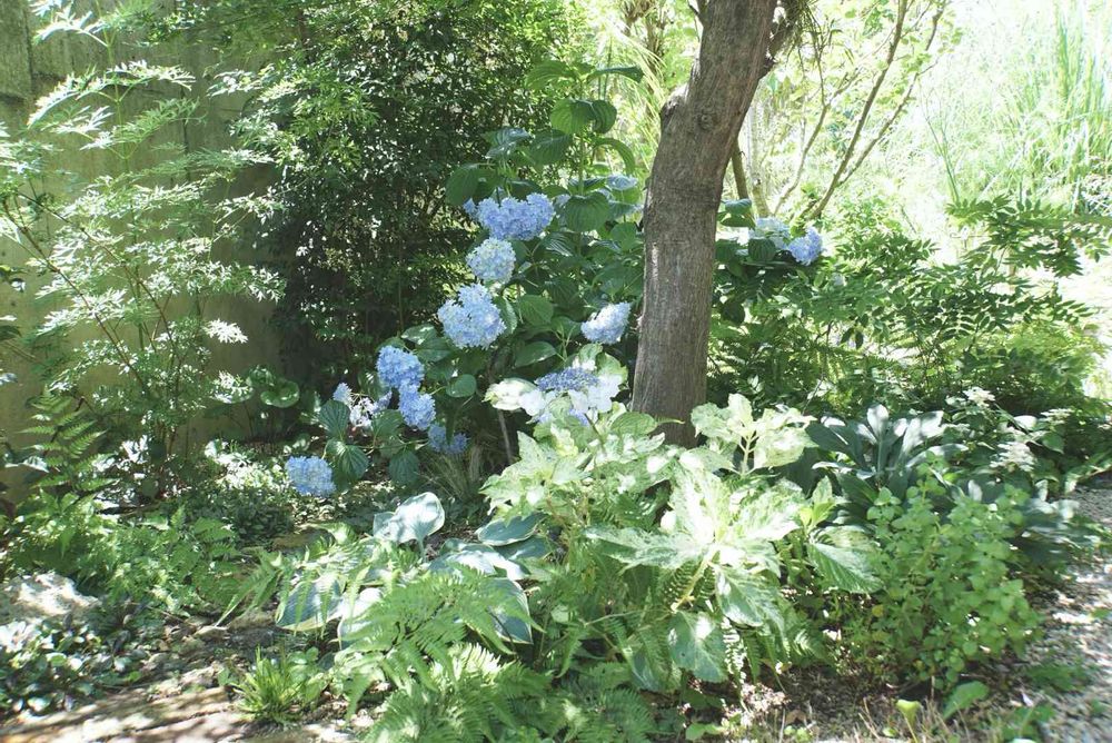 紅葉の庭の3つだけの紫陽花が咲きそろいました