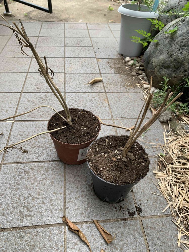 この後、枯れた茎部分は少し残してハサミでカットしました。