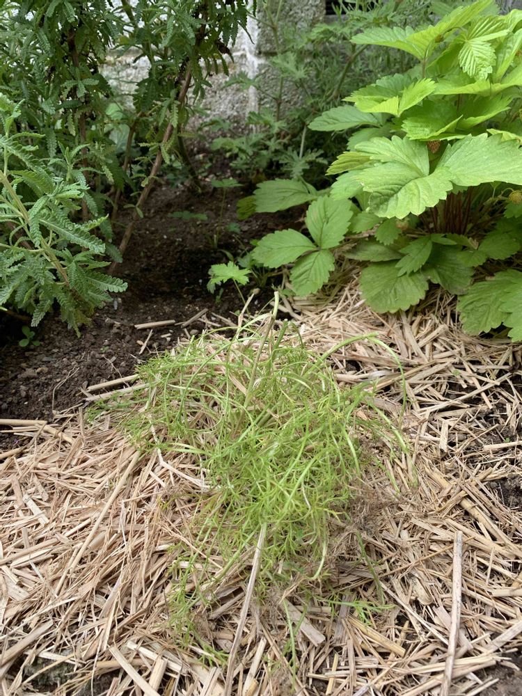 シソ、ワイルドストロベリー、ジャーマンカモミールの収穫をしています。